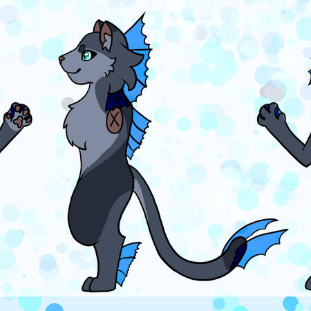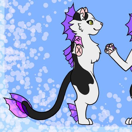 The Freshwater Catfish are a hybrid species composed of a domestic house cat and a fish.The Freshwater Catfish stand 3 to 4 feet tall in anthro form and the size of a typical house cat in feral form. They have a set of fins either on their sides or on the neckThey can have any size and shaped ears and tails common to the feline species.